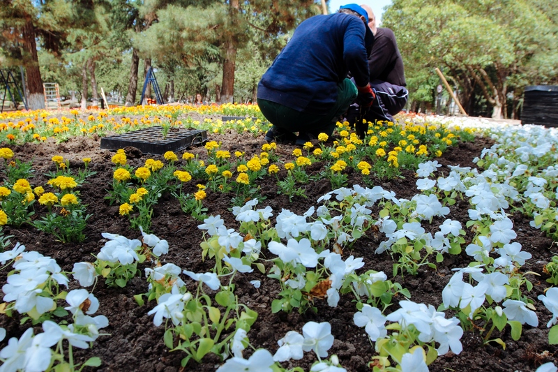 ვერის ბაღსა და რიყის პარკში გამწვანებითი სამუშაოები მიმდინარეობს