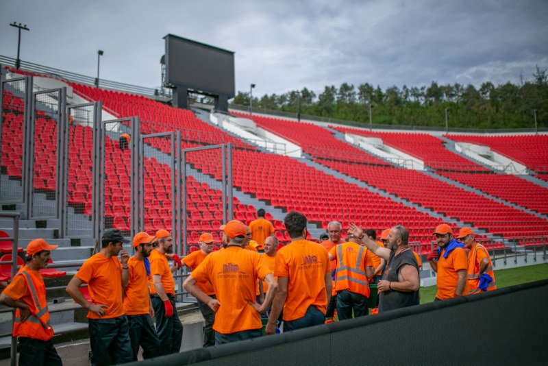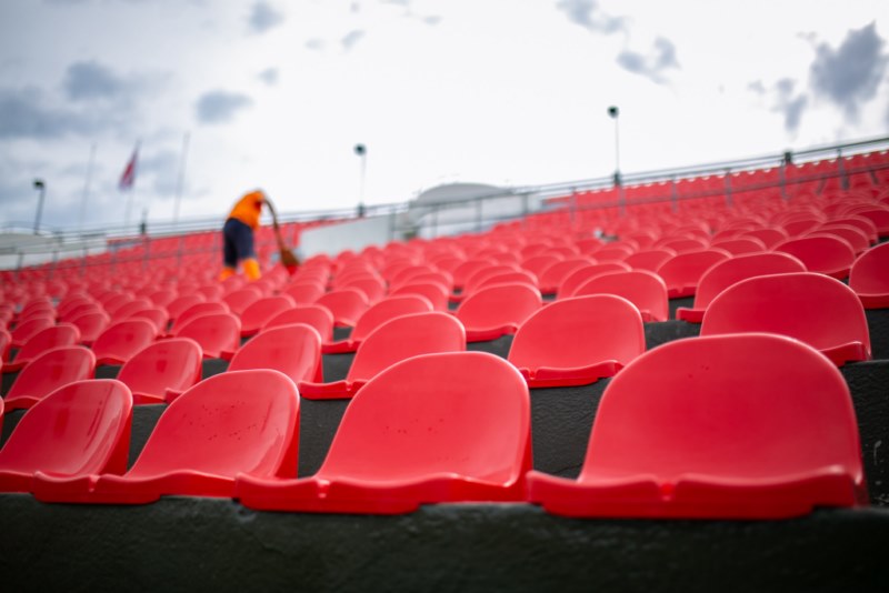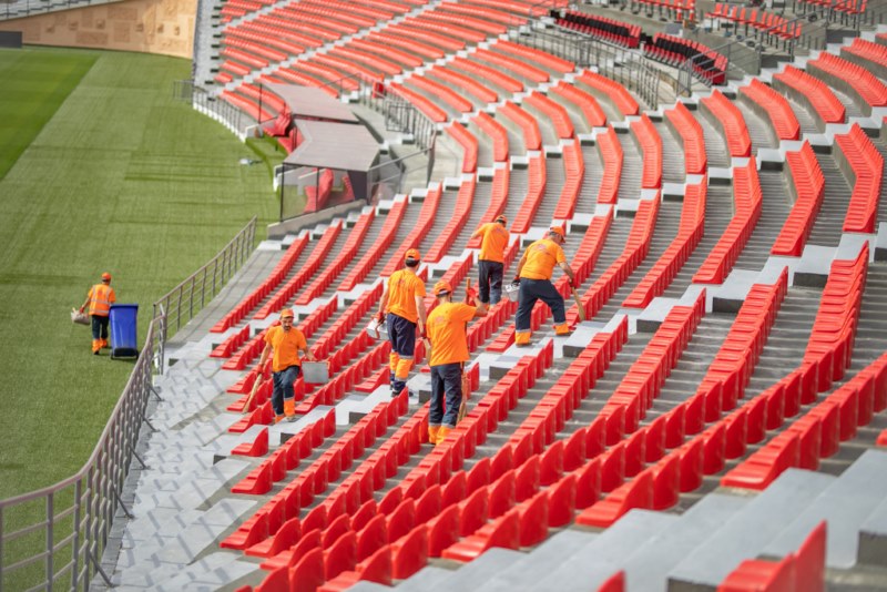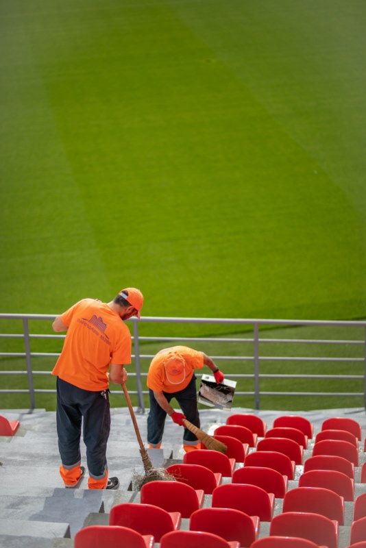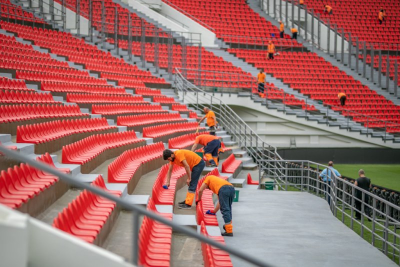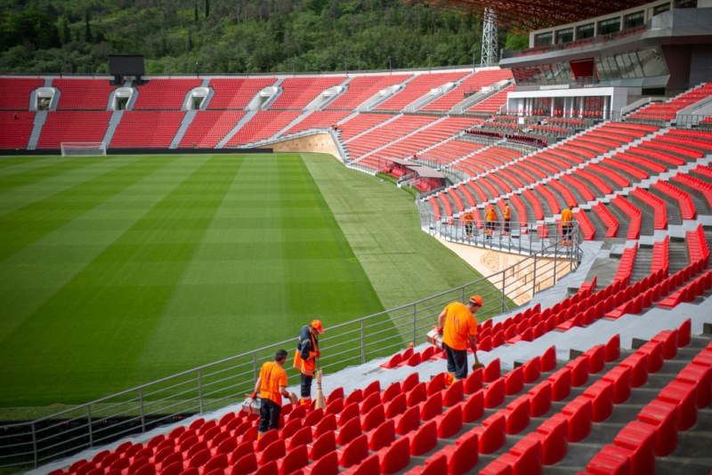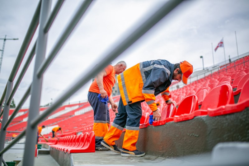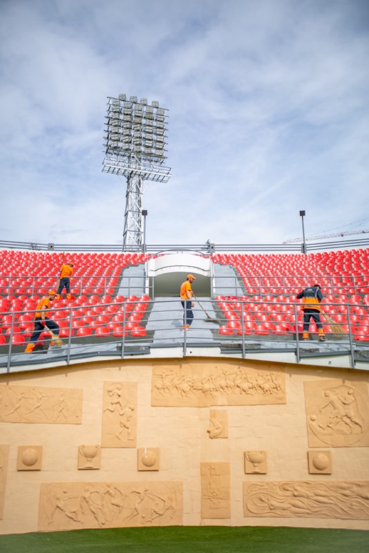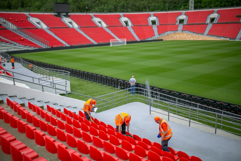 The seats on the stands were cleaned, the field was cleaned and the outer perimeter was washed with special equipment.