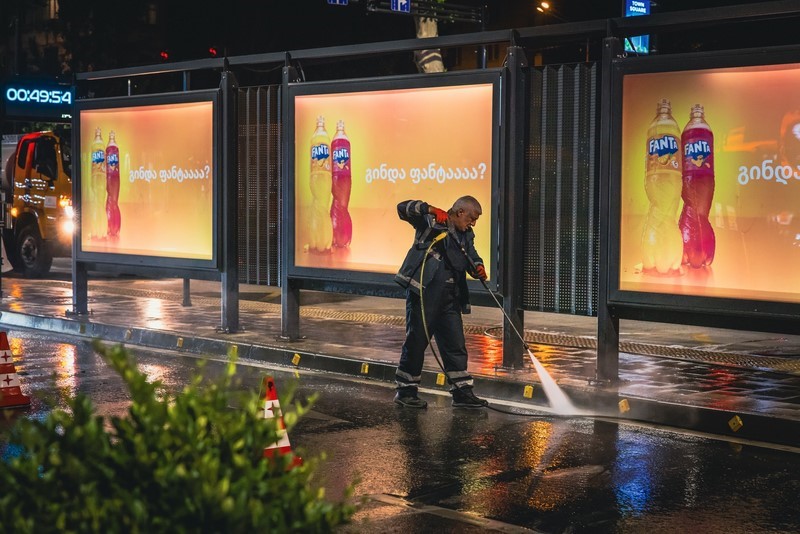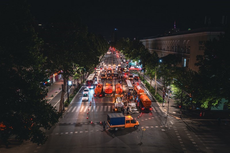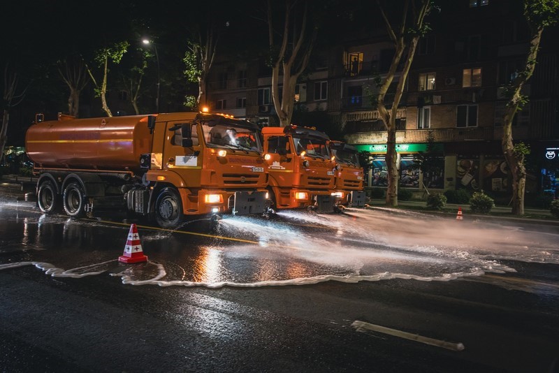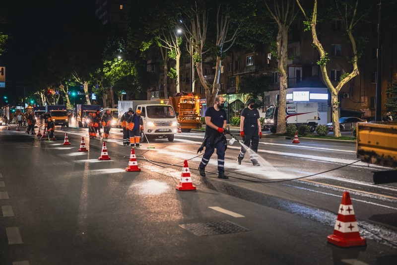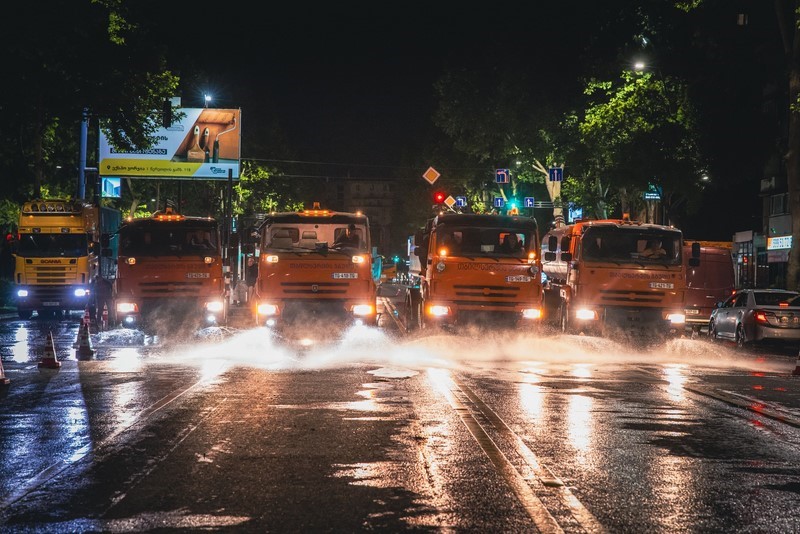 დედაქალაქში ქუჩების მორეცხვა ინტენსიურად მიმდინარეობს