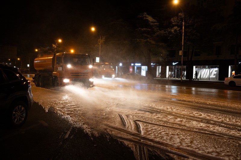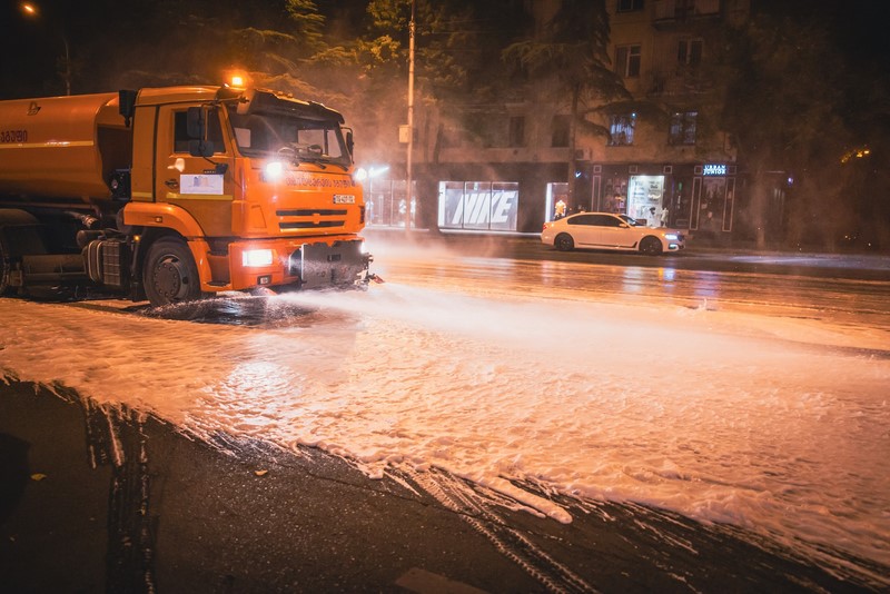 საბურთალოს რაიონის ქუჩებზე გზის სავალი ნაწილის გარდა კონტეინერები და მიწისქვეშა გადასასვლელებიც მოირეცხა. ვაჟა-ფშაველასა და ყაზბეგის გამზირების ვაკის რაიონის საგზაო მონაკვეთზეც (მეტროსდაგურ „დელისის“ შემდეგ) რეგულარულად სრულდება მორეცხვის სამუშაოები.