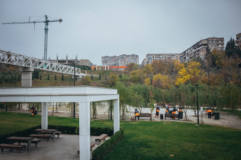 „თბილსერვის ჯგუფის“ თანამშრომლები თემქის ხევში გაშენებულ საქალაქო პარკს ყოველდღიურად ასუფთავებენ.