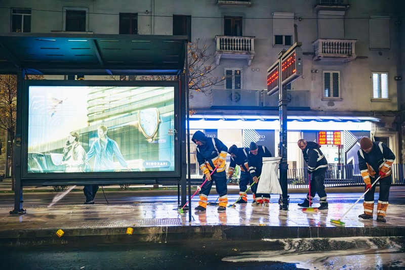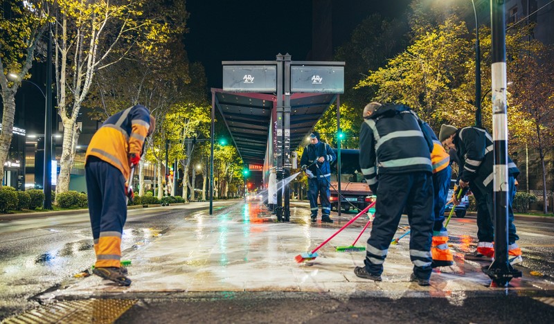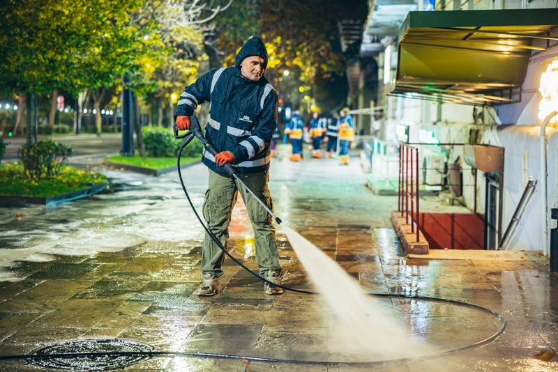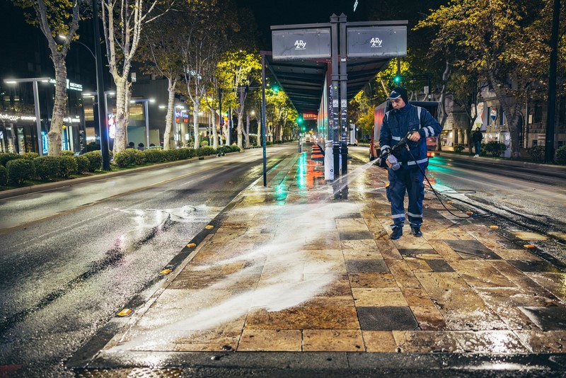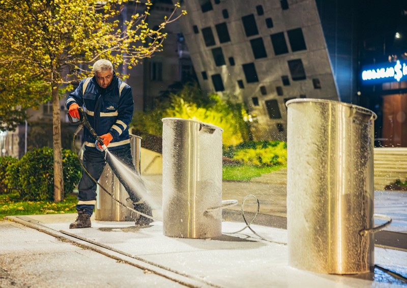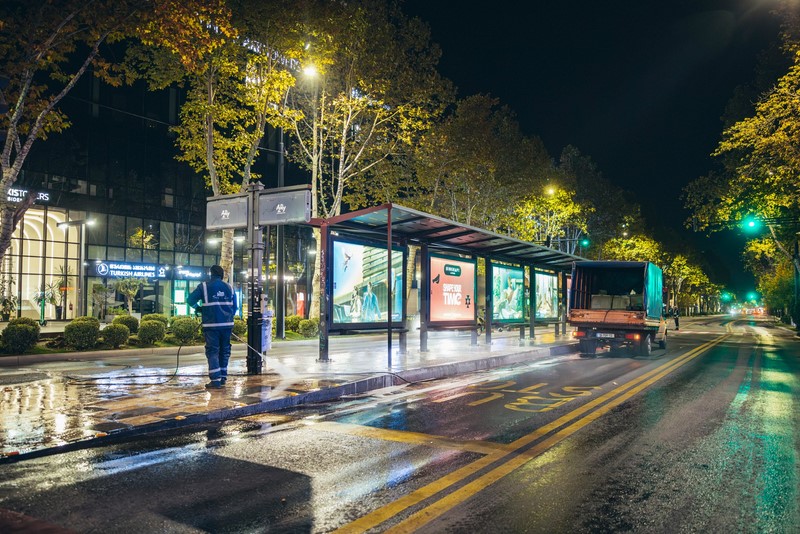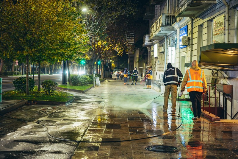 ვაკის რაიონში, ილია ჭავჭავაძის გამზირზე ტროტუარები, ფილები, მიწისქვეშა კონტეინერები და მუნიციპალური ტრანსპორტის გაჩერებები მოირეცხა.