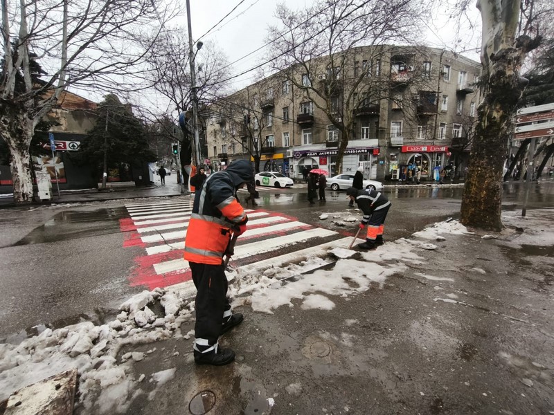დედაქალაქის შემოერთებულ ტერიტორიებზე შიდა გზების გაწმენდის სამუშაოები გრძელდება. ასევე, გაიწმინდა თბილისის ქუჩებში არსებული ქვეითთა გადასასვლელები, მუნიციპალური ტრანსპორტის გაჩერებები, საერთო სარგებლობის კიბეები.