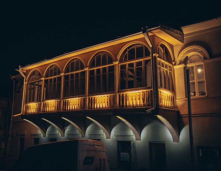 ალექსანდრე ჭავჭავაძისა და გრიბოედოვის ქუჩების კვეთაზე მდებარე ისტორიულ შენობაზე მხატვრულ-არქიტექტურული განათება მოეწყო.