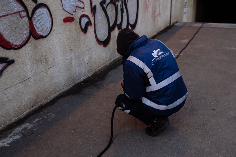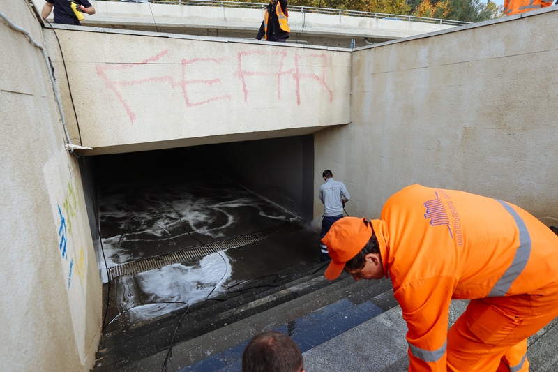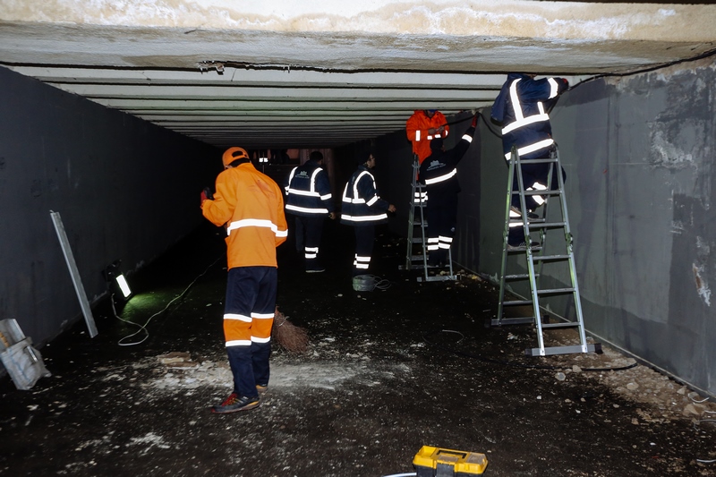 მორეცხვითი სამუშაოები გმირთა მოედნის მიწისქვეშაში