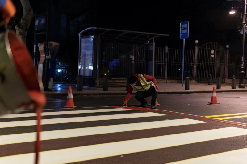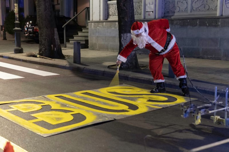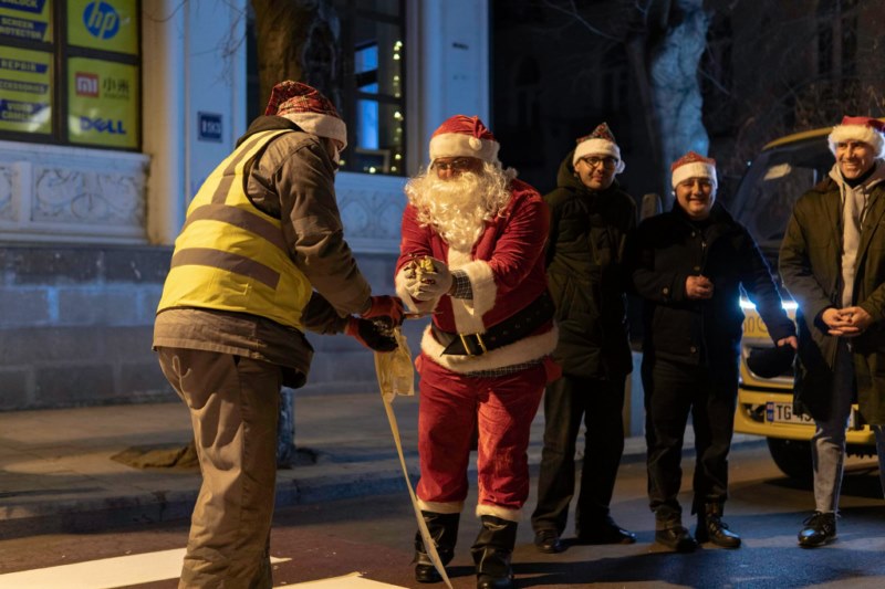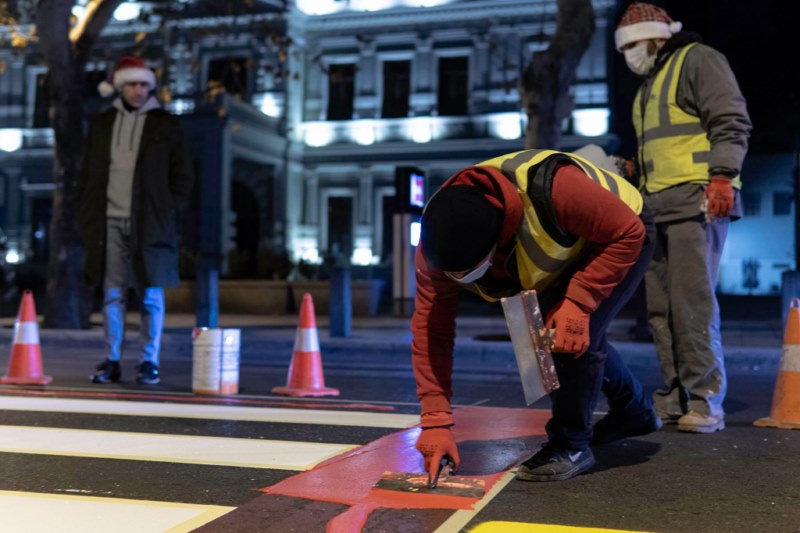 სანტას ფორმაში გადაცმულმა თანამშრომლებმა დავით აღმაშენებლის გამზირზე გზის დახაზვის სამუშაოები შეასრულეს.