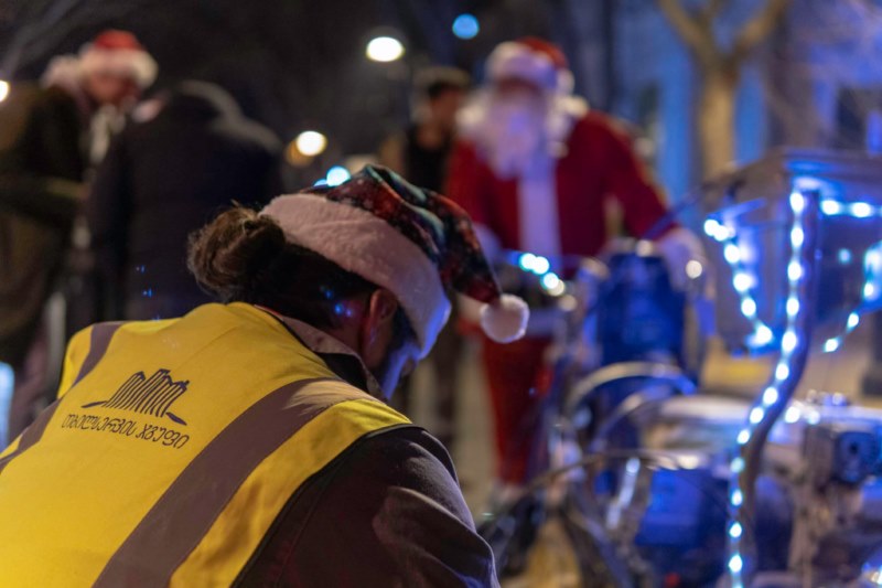 შპს "თბილსერვის ჯგუფის" სანტას ფორმაში გადაცმულმა თანამშრომლებმა დავით აღმაშენებლის გამზირზე გზის დახაზვის სამუშაოები შეასრულეს.