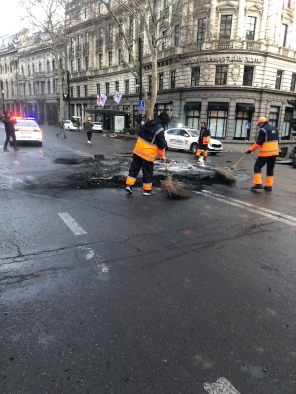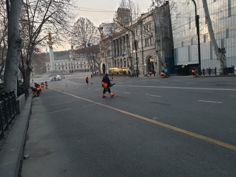 რუსთაველის გამზირი და საქართველოს პარლამენტის მიმდებარე ქუჩები დასუფთავდა, მოწესრიგდა.