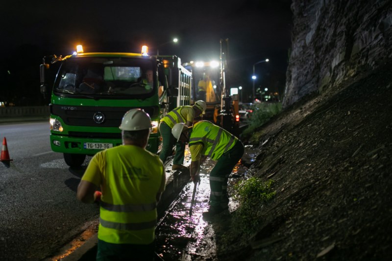 სამუშაოები „თბილსერვის ჯგუფის“ სანიაღვრე და სადრენაჟე ქსელების ექსპლუატაციის დეპარტამენტის თანამშრომლებმა სპეცტექნიკის დახმარებით შეასრულეს.