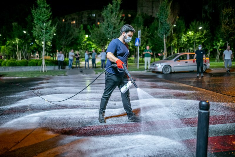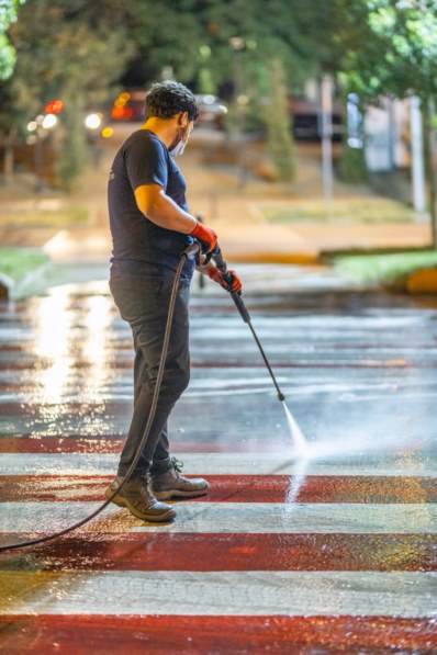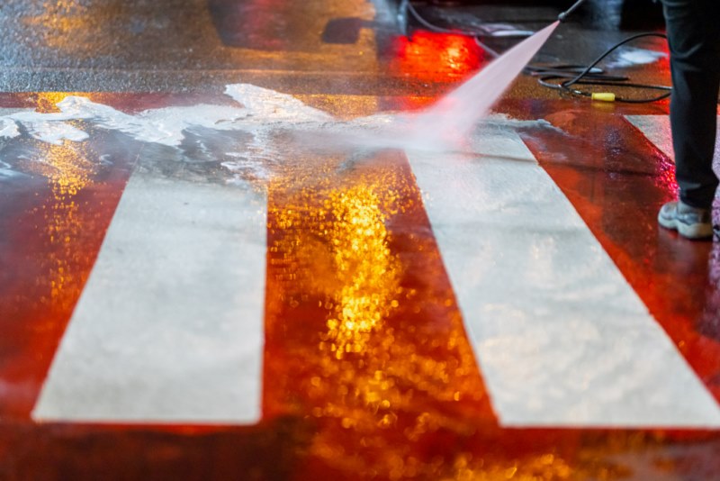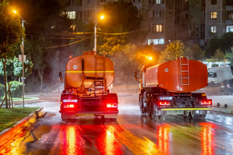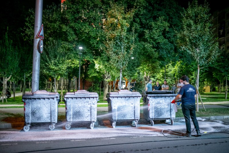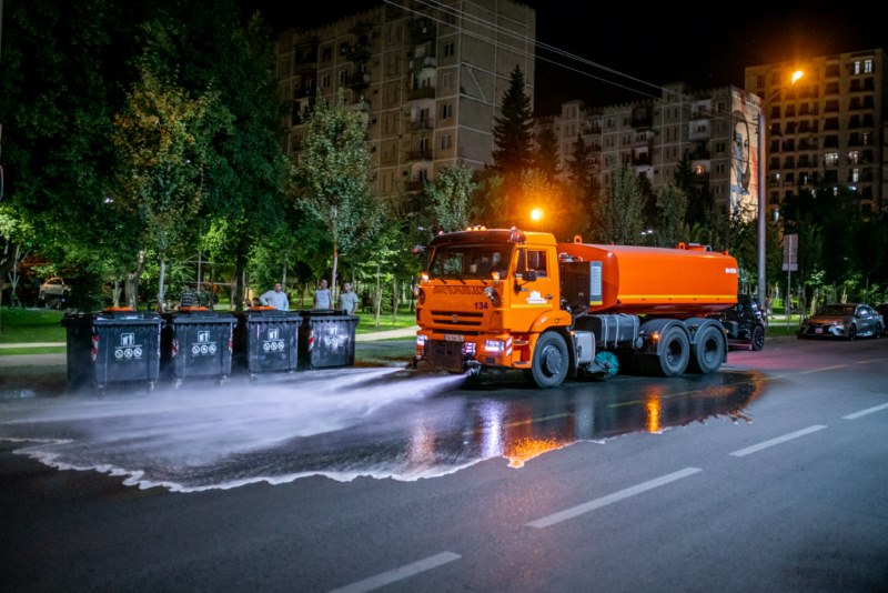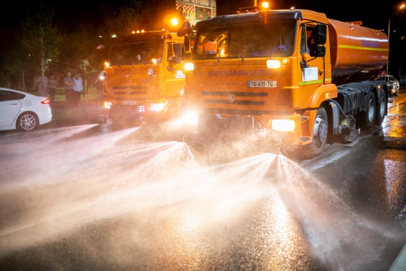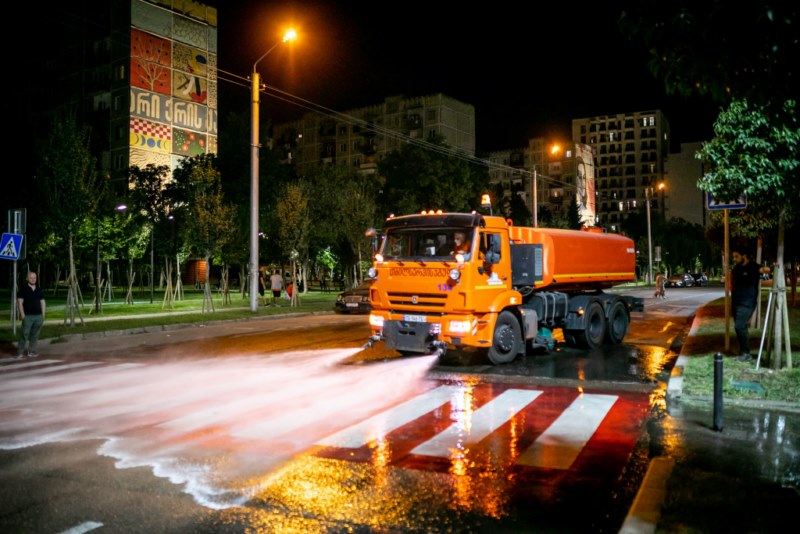 მოირეცხა გზის სავალი ნაწილი, ნარჩენების შემკრები კონტეინერები და ქვეითთა გადასასვლელები.