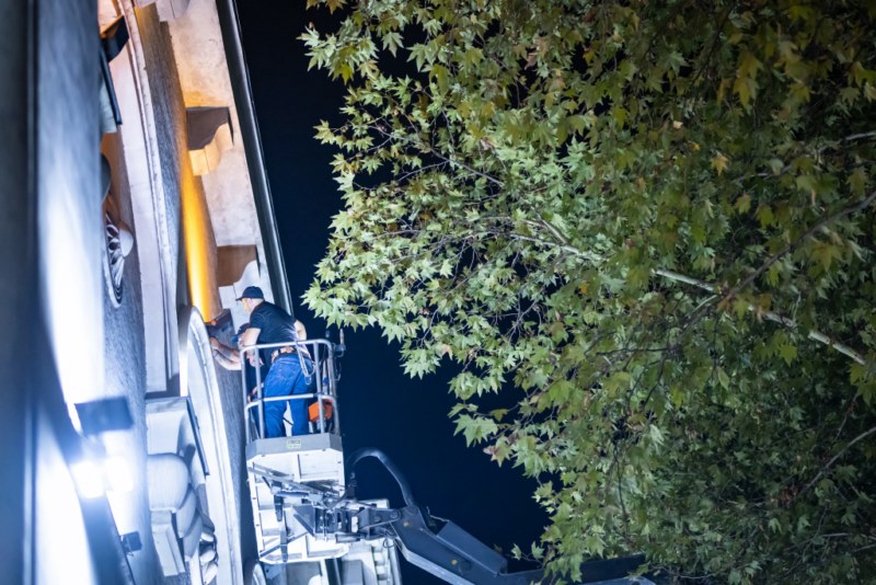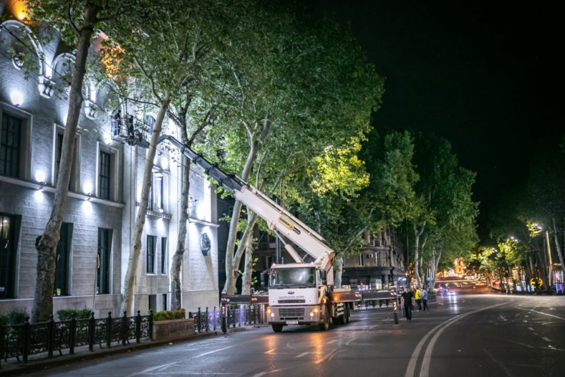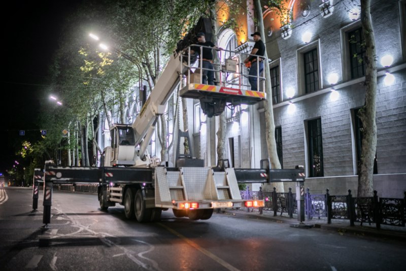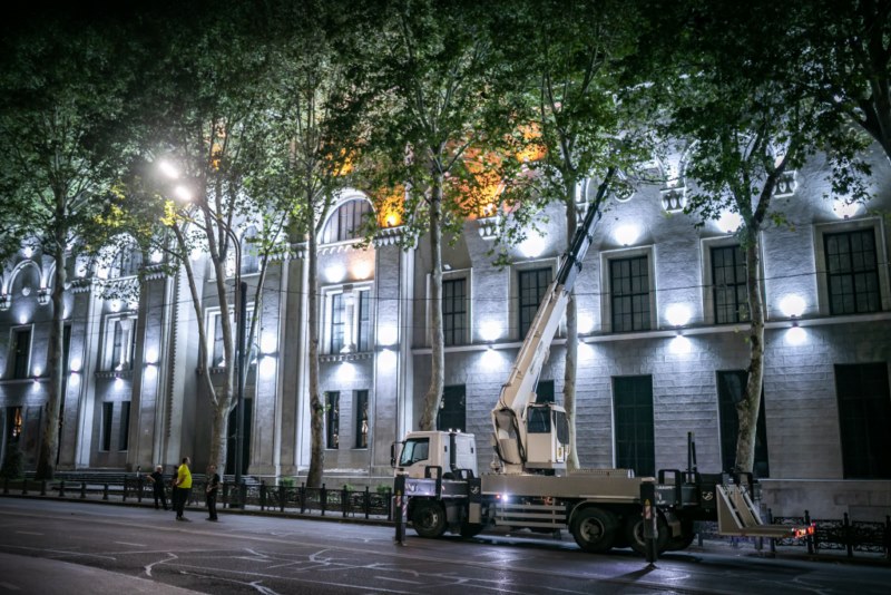 „თბილსერვის ჯგუფის“ თანამშრომლებმა შენობის ფასადზე სულ 115 ერთეული LED პროჟექტორი დაამონტაჟეს.