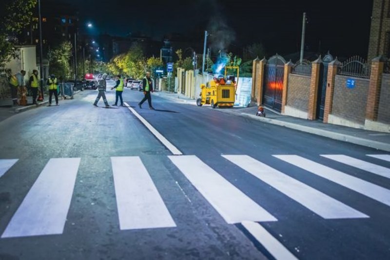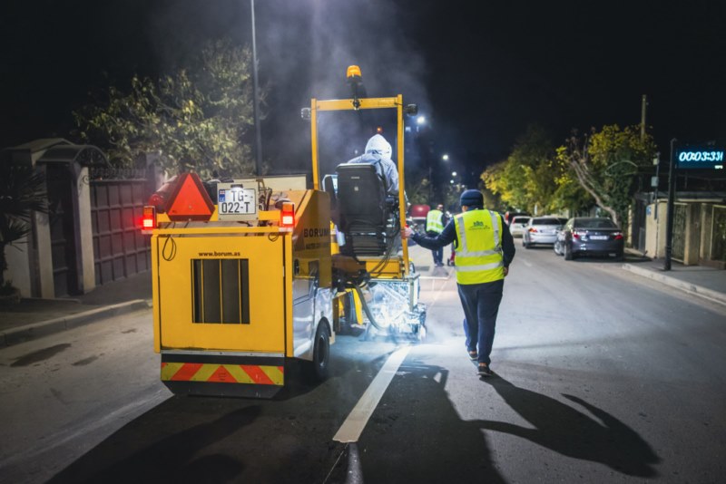 სამუშაო პროცესს „თბილსერვის ჯგუფის“ დირექტორი დავით ფაჩულია გაეცნო. აღნიშნული გზა ორკომპონენტიანი ცივი და თერმო პლასტის საღებავით იხაზება, რომლის მედეგობა (გამძლეობა) მინიმუმ სამი წელია.