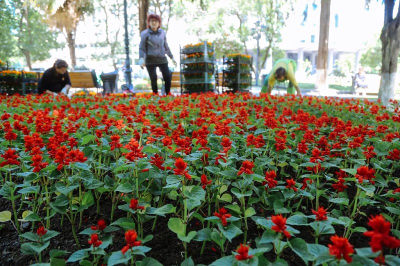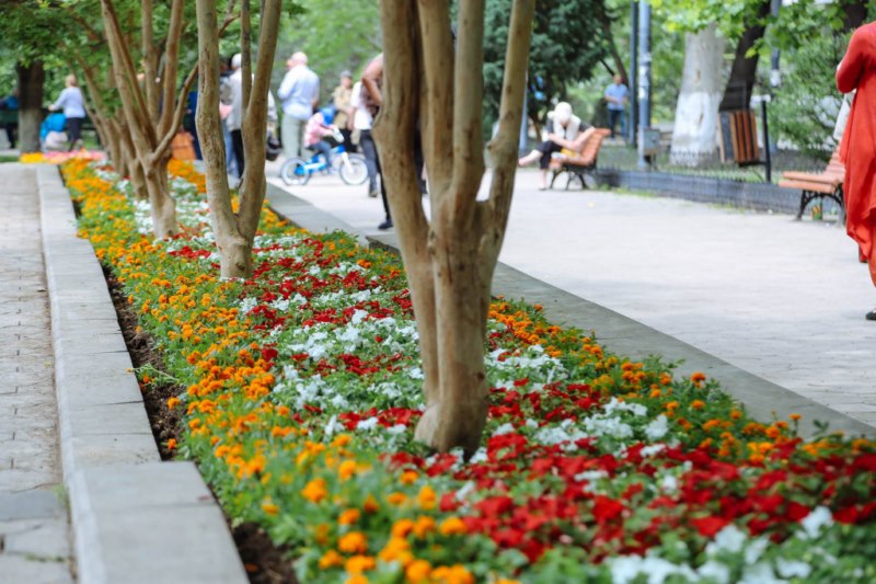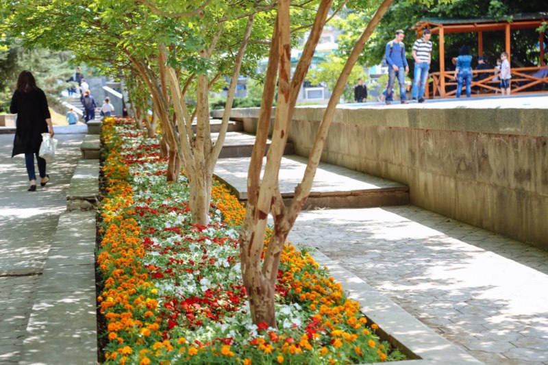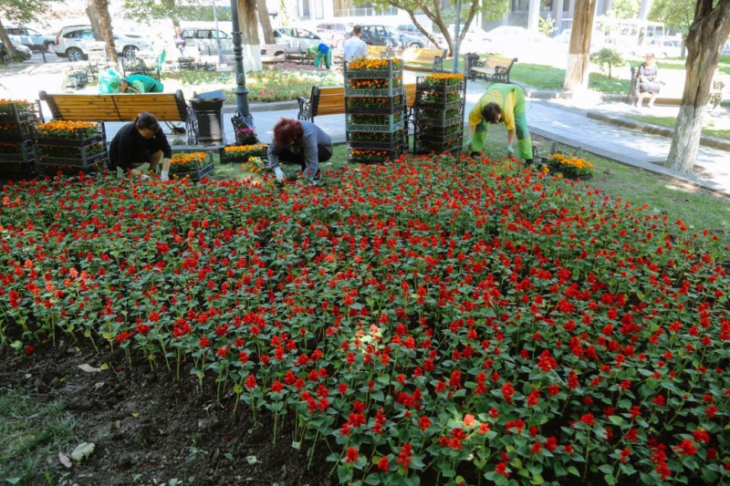პარკებსა და ბაღებში გამწვანების სამუშაოები მიმდინარეობს