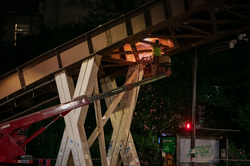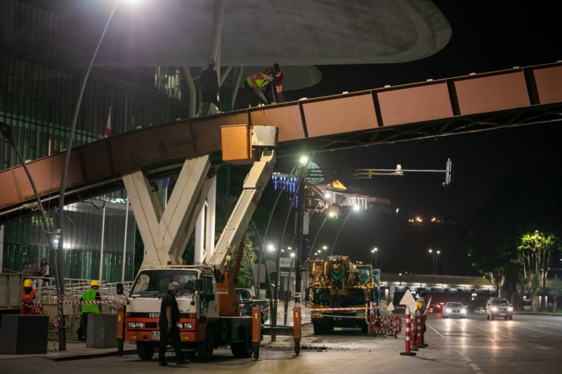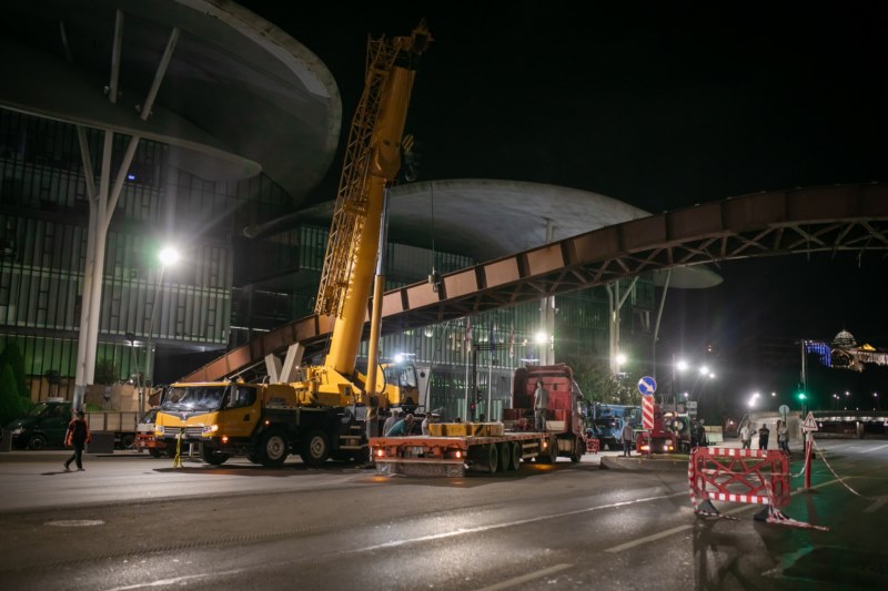 შპს „თბილსერვის ჯგუფი“ იუსტიციის სახლის წინ არსებული საფეხმავლო ხიდის დემონტაჟს ახორციელებს. სამუშაოები რამდენიმე დღეში დასრულდება.